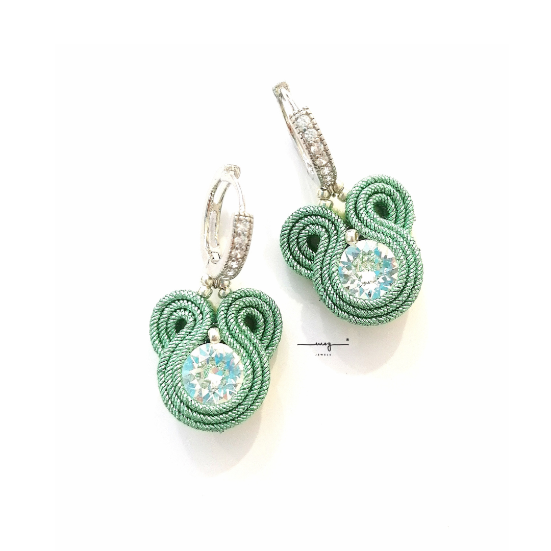 Entirely hand-sewn, BabyM hoops by MEG Jewels® are made of italian yarns, premium crystals, nickel free hoops, Alcantara. Tiffany earrings with silver hoops.