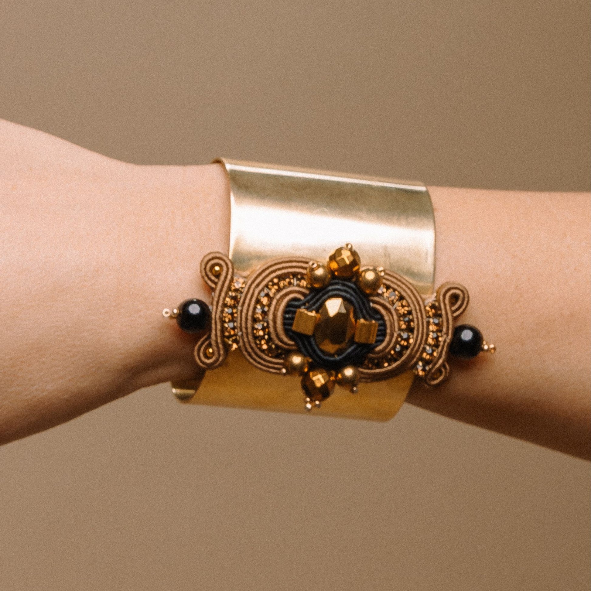 Bracelet from SHERAZADE Collection by MEG Jewels®. Entirely hand-sewn, made of italian yarns, premium crystals, Alcantara.