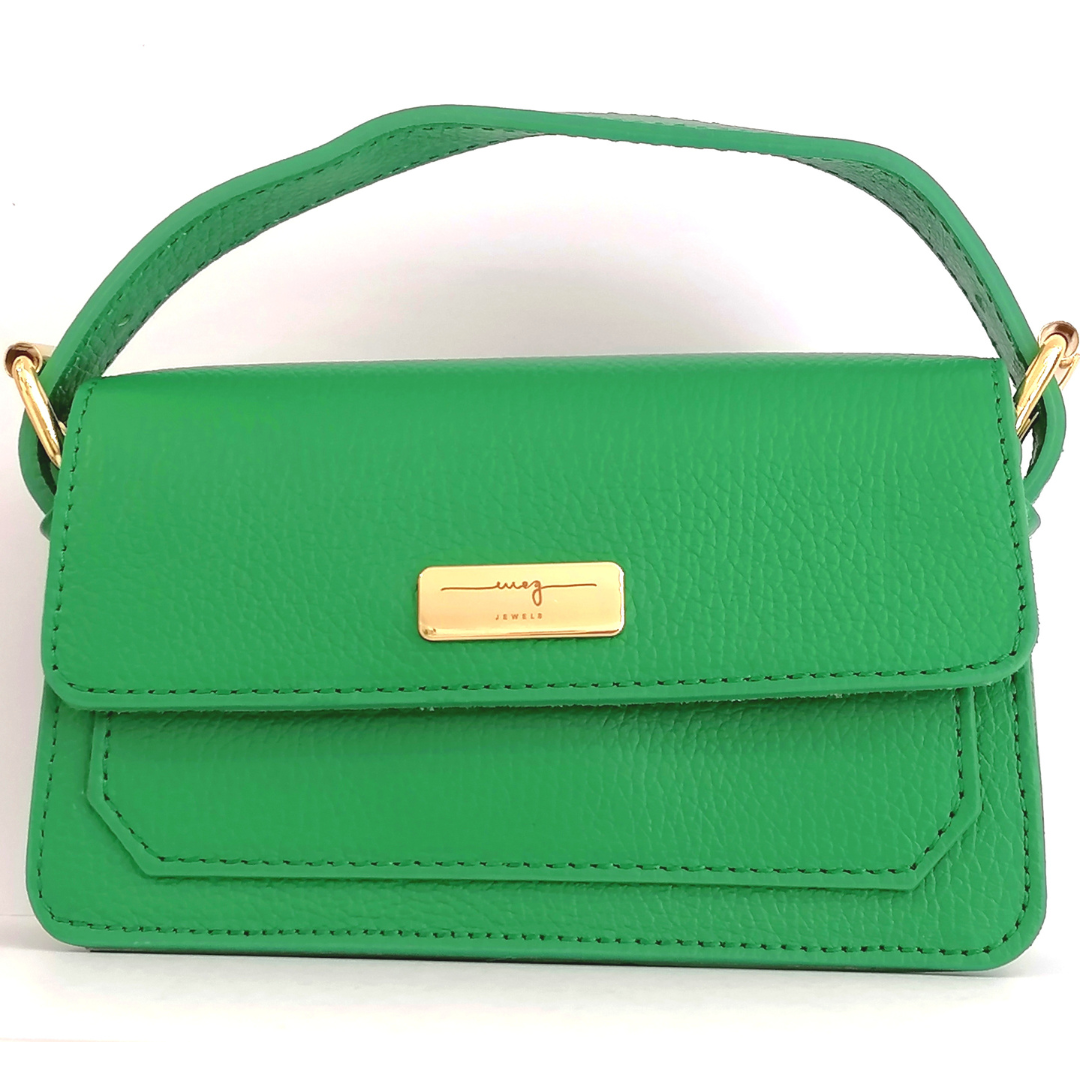 Le Mini bag di ESSENTIALS sono leggere e compatte. Taschino esterno e scomparto interno unico. Maniglia e tracolla in pelle regolabile e removibile. Dettagli oro. Misure 19 x 12 x 5 cm. Peso 0,5 kg. Colore verde smeraldo.