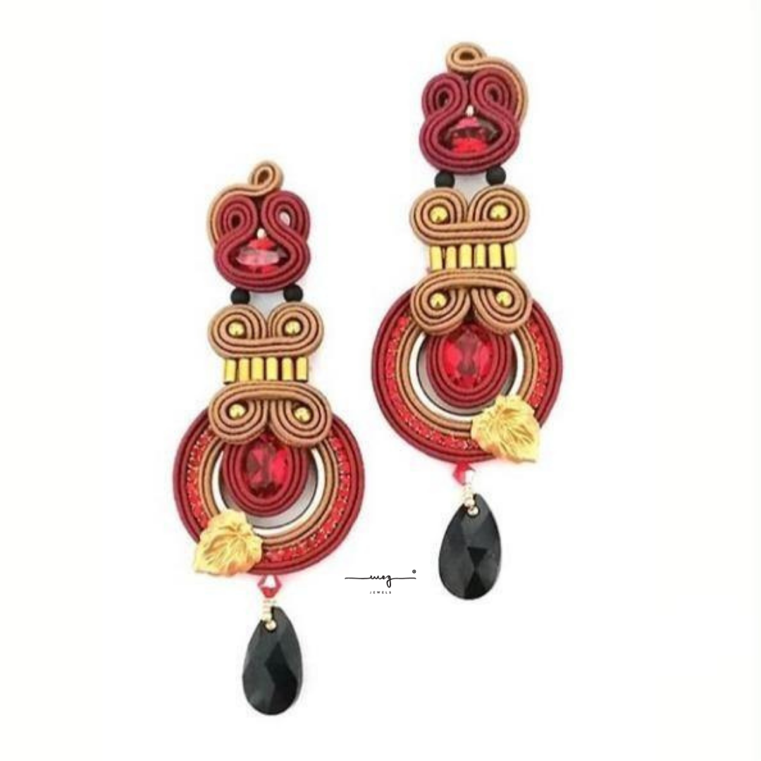Orecchini misura lunga, Collezione ORIENTE by MEG Jewels®. Colori: nero, ciliegia e oro.