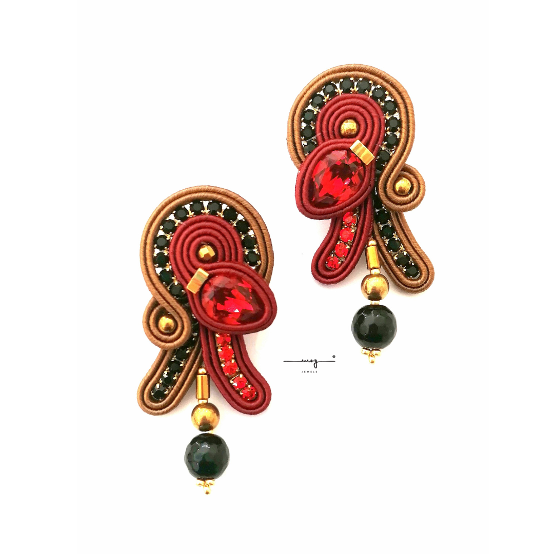 Earrings medium size, 'Oriente' Collection by MEG Jewels®. Entirely hand-sewn, made of Italian yarns, premium crystals, nickle free pins, Alcantara. Certificate of guarantee and authenticity.