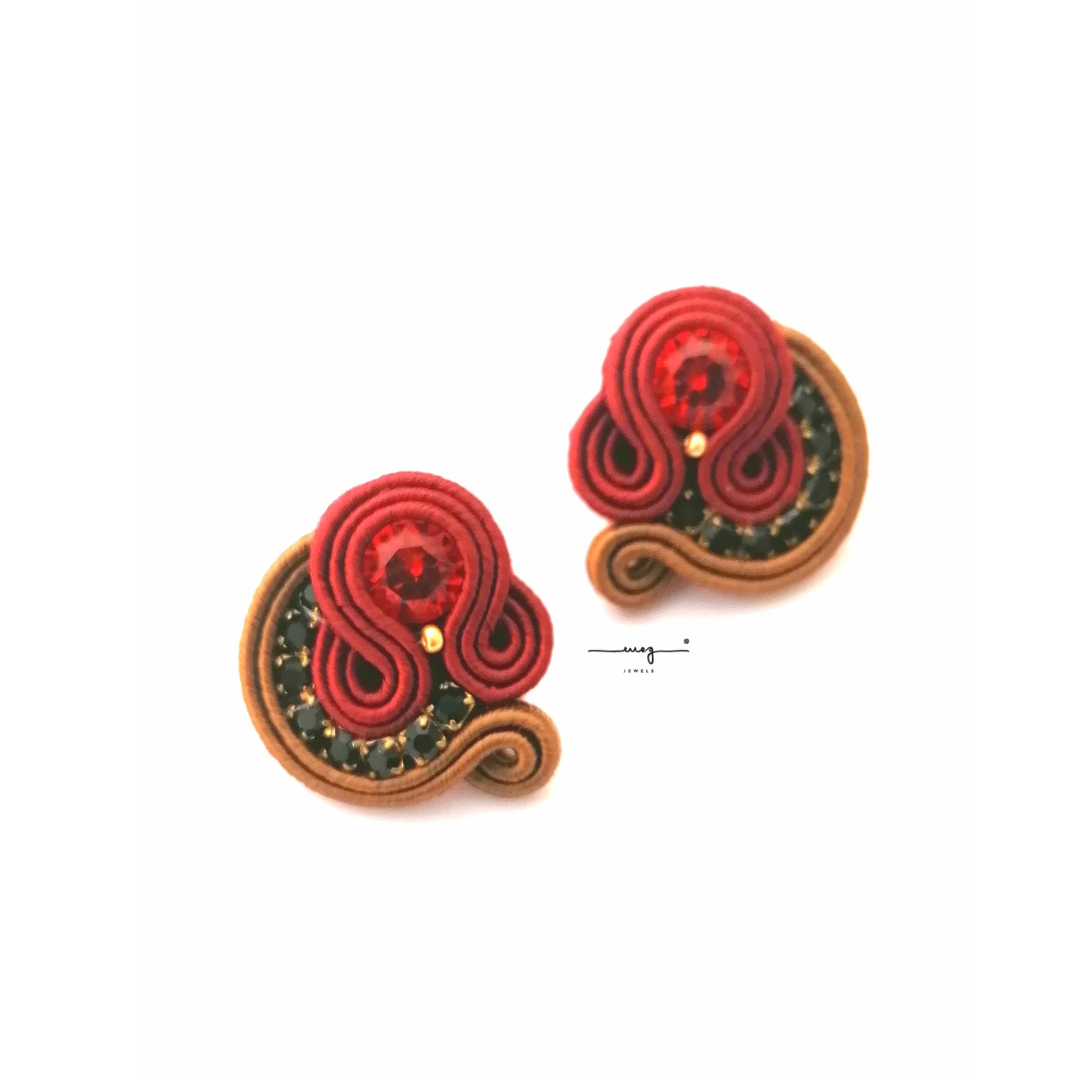 Earrings small size, 'Oriente' Collection by MEG Jewels®. Entirely hand-sewn, made of Italian yarns, premium crystals, nickle free pins, Alcantara. Certificate of guarantee and authenticity.