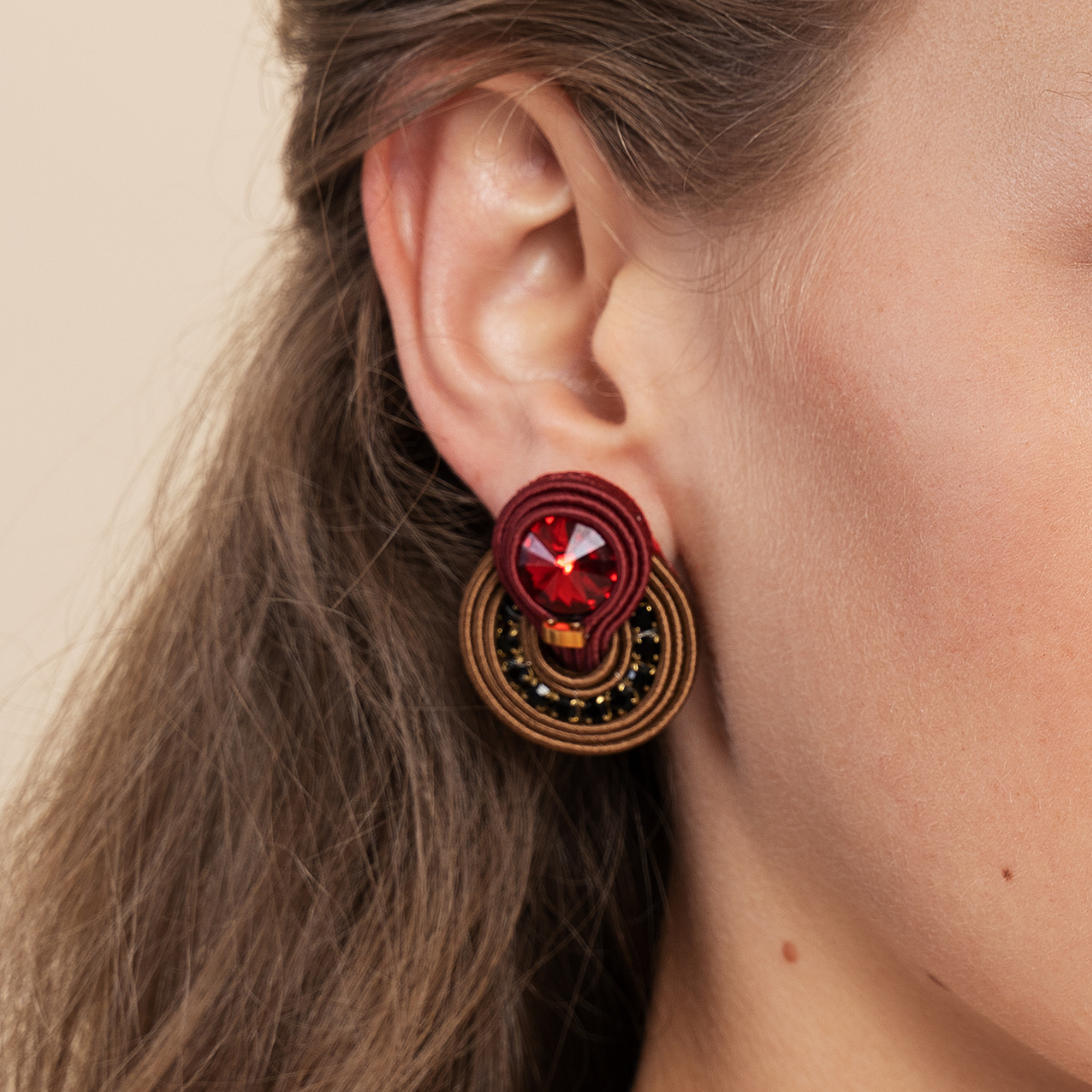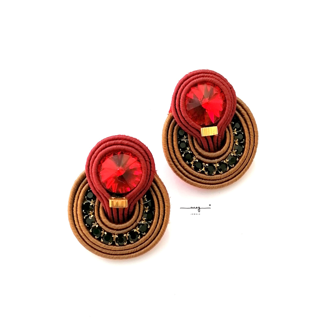 Earrings small size, 'Oriente' Collection by MEG Jewels®. Entirely hand-sewn, made of Italian yarns, premium crystals, nickle free pins, Alcantara. Certificate of guarantee and authenticity.