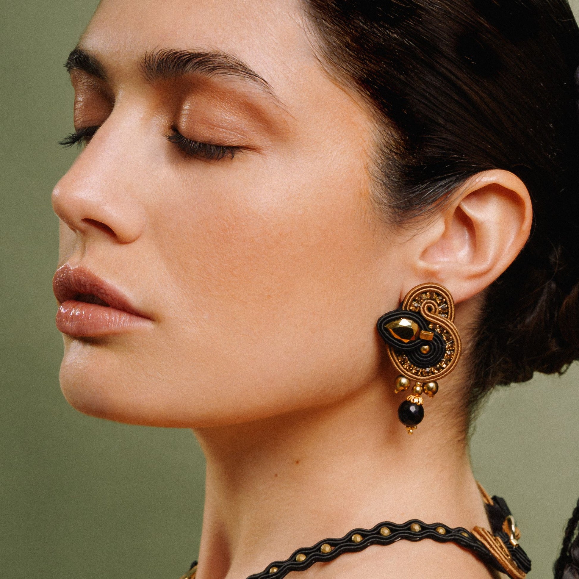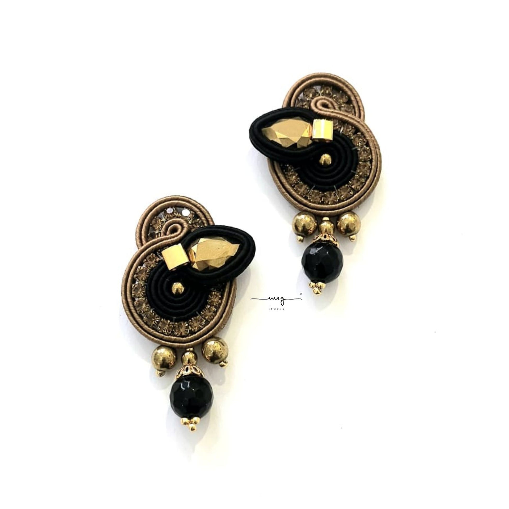 Medium size earrings from SHERAZADE Collection by MEG Jewels®. Entirely hand-sewn, made of italian yarns, premium crystals, nickel free pins, Alcantara.