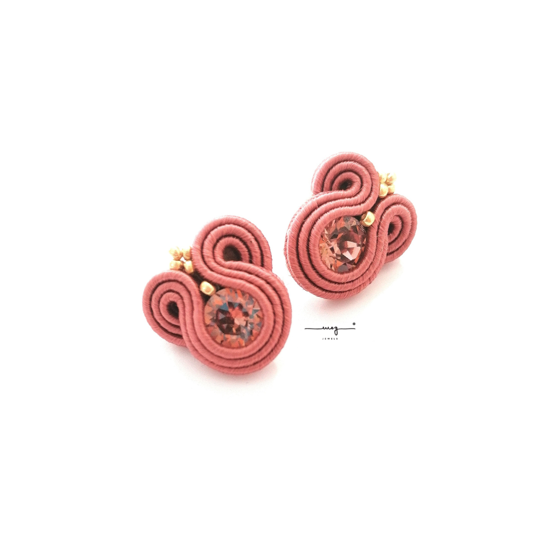 Entirely hand-sewn, the 'BabyM™ originals' are extrasmall earrings by MEG Jewels® made of italian yarns, premium crystals, nickel free pins, Alcantara. Certificate of guarantee and authenticity. Antique pink color.