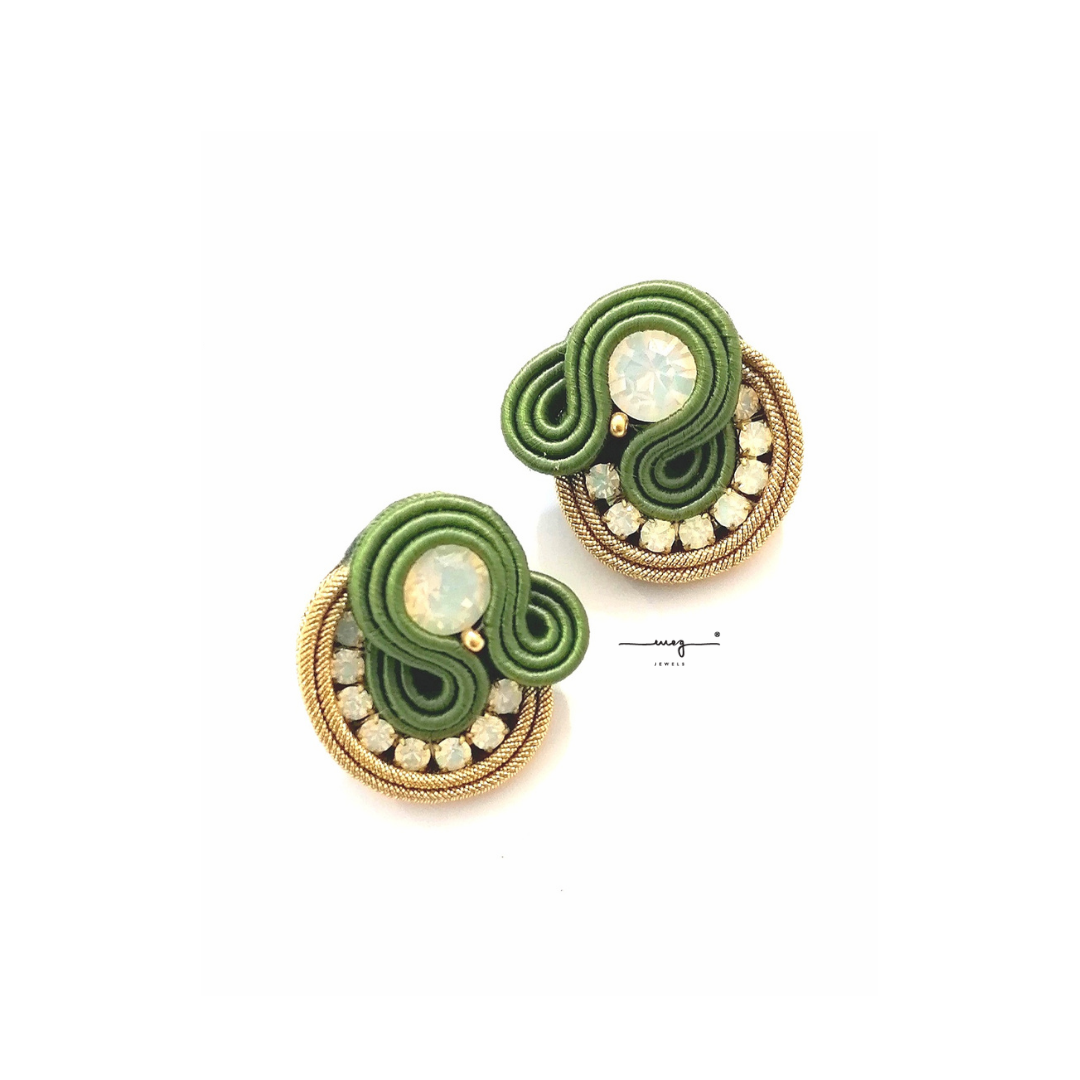 Earrings small size, Éthérée, Deluxe edition, by MEG Jewels®. Entirely hand-sewn, made of Italian yarns, premium crystals, nickel free pins, Alcantara. Certificate of guarantee and authenticity.